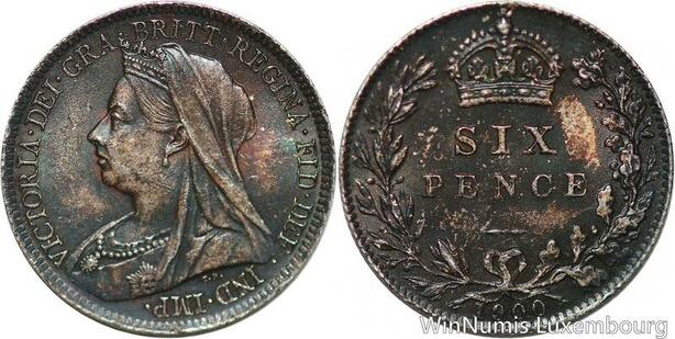 P3188 Great Britain 6 Pence Victoria 1900 Silver AU -> Make offer