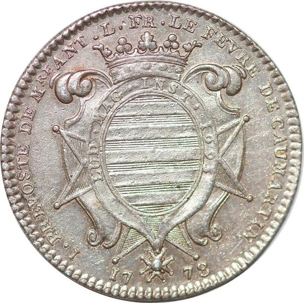 P3315 Rare France Jeton Antoine Lefèvre Caumartin prévot marchands Paris 1778 SUP