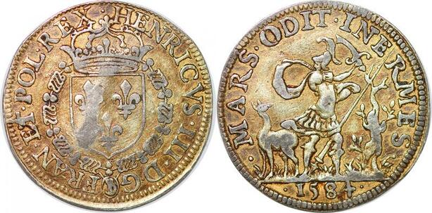P3320 Tres Rare France Jeton Henri III Roi Pologne Grâce de Dieu Mars 1584 Argent