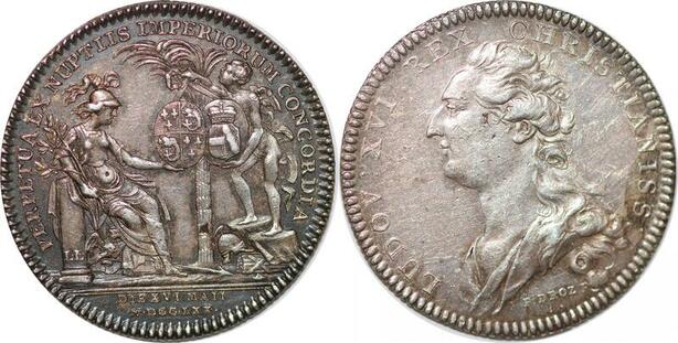 P3321 Rare France Jeton Dauphiné Louis XVI mariage du dauphin 1770 Droz SUP