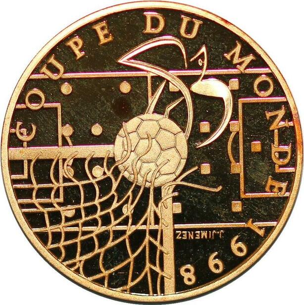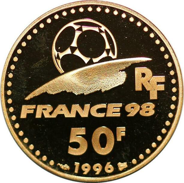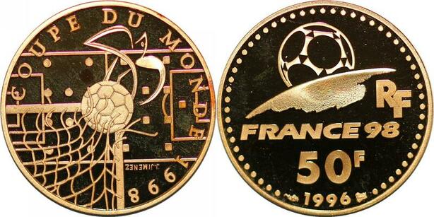 P3357 France 50 Francs World Cup Coupe Monde Football 1998 Or Gold PF BE