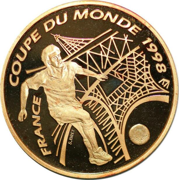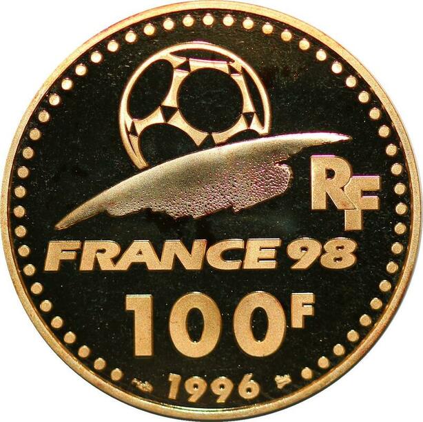 P3358 France 100 Francs World Cup Coupe Monde Football 1996 Or Gold PF BE
