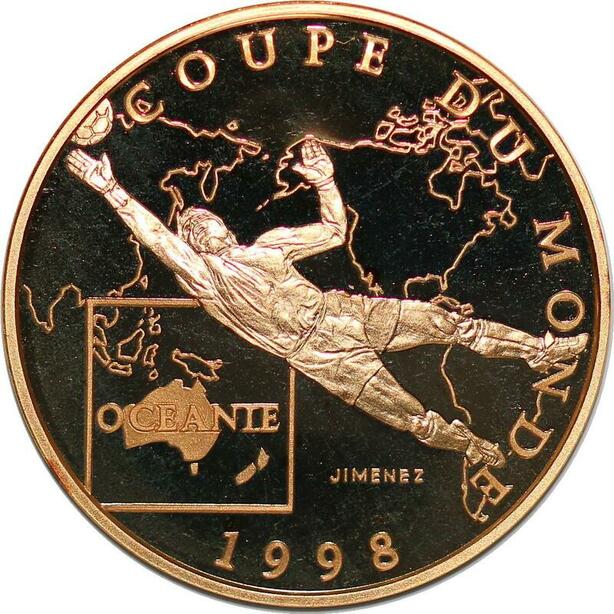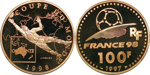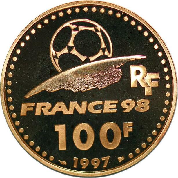 P3360 France 100 Francs World Cup Coupe Monde Football 1997 Oceania Or Gold PF BE