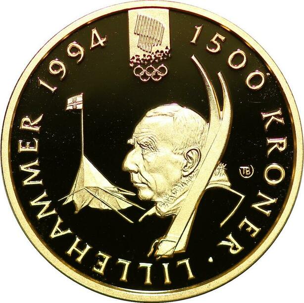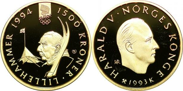 P3366 Norway 1500 Kroner JO Lillehammer 1994 Harald V 1993 K Or Gold