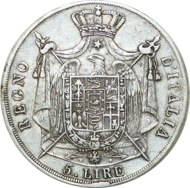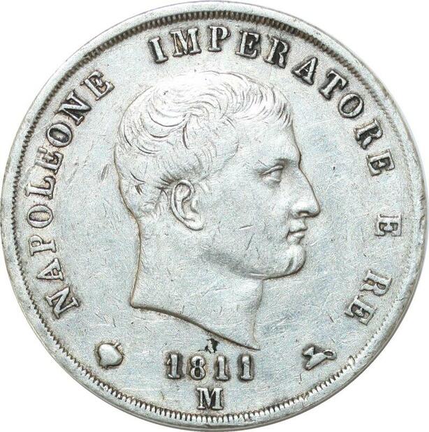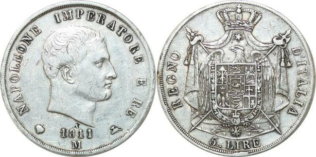 P3373 Scarce Italy 5 lire Napoleon I 1811 M Milan Tr Creux Silver ->Make offer