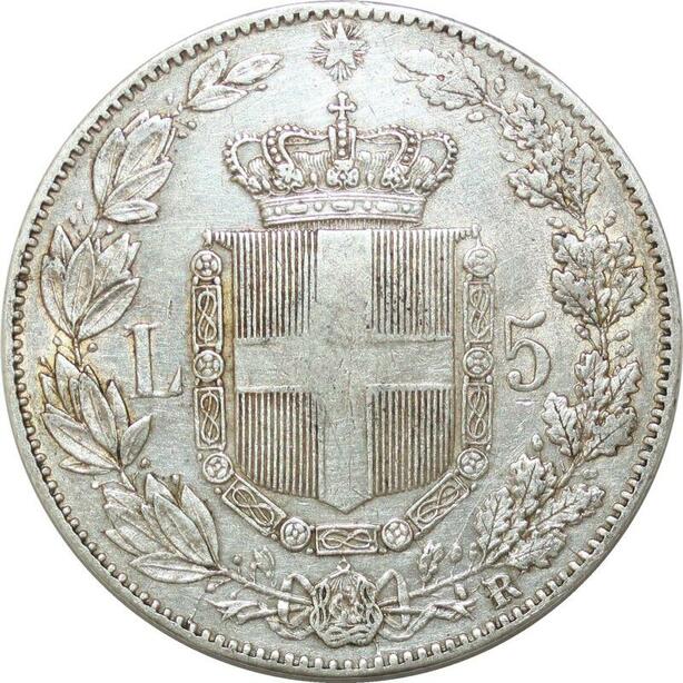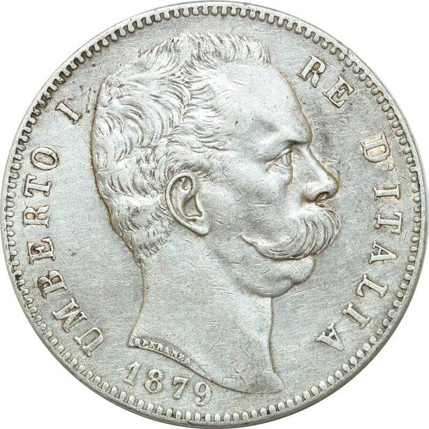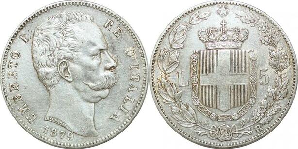 P3374 Scarce Italy Savoia 5 Lire Umberto I 1879 R Roma Silver AU
