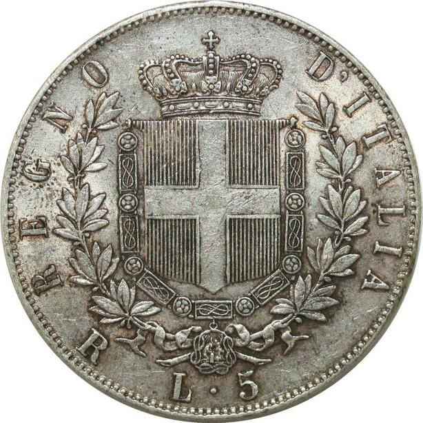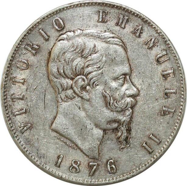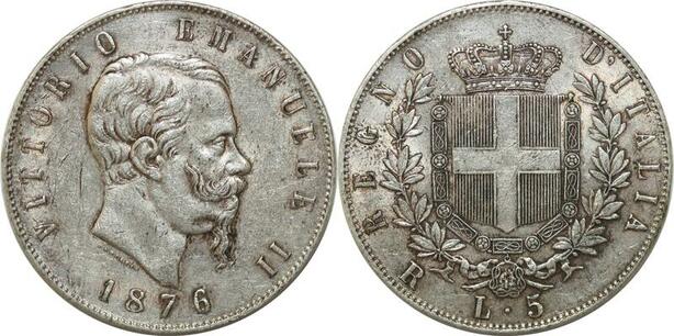 P3380 Scarce Italy 5 Lire Vittorio Emanuele II 1876 R Roma Silver XF+ ->M offer