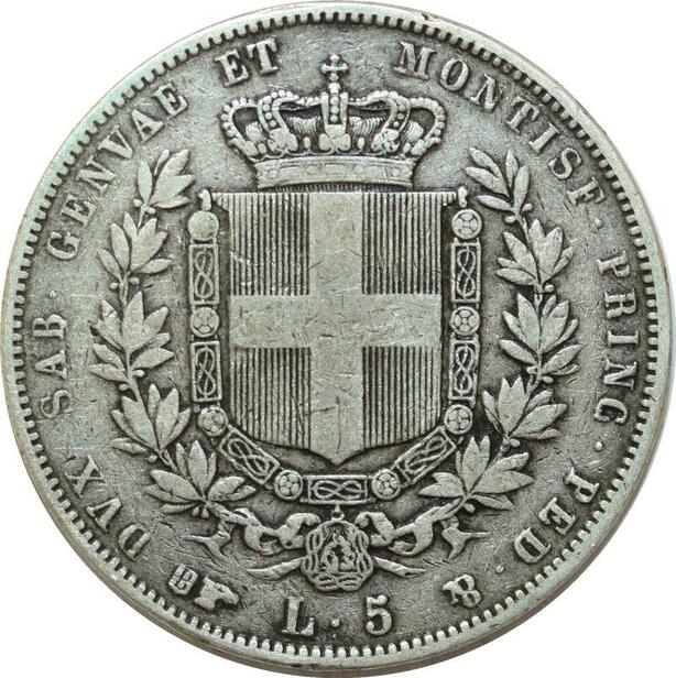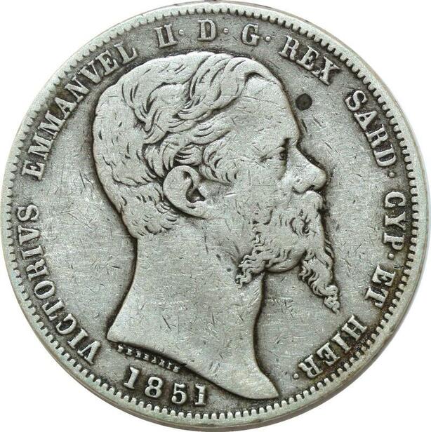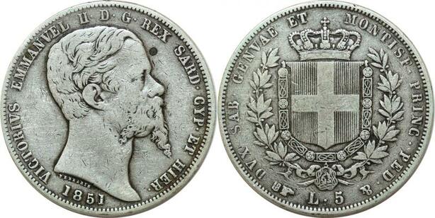 P3383 Scarce Italy 5 Lire Vittorio Emanuele II 1851 Eagle Milan Milano Silver