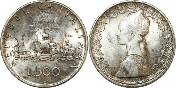 P3400 Italy Repubblica Italiana 500 Lire Caravelle Mont 1966 BU UNC
