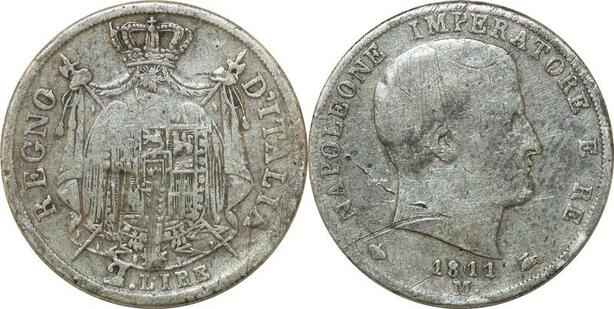 P3408 Italy 2 Lire Napoléon 1811 M Milan silver -> Make offer