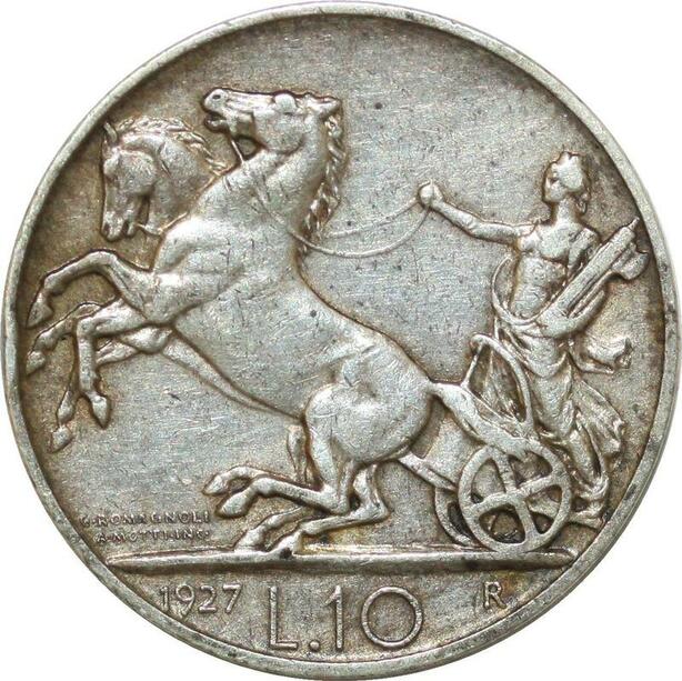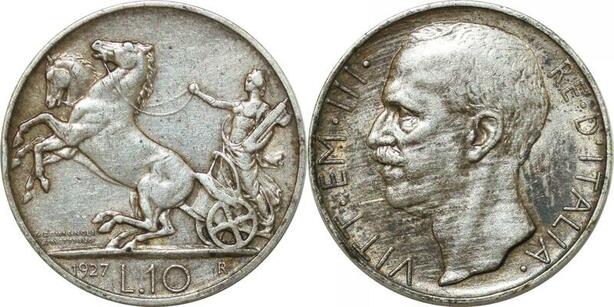 P3410 Italy 10 Lire 1927 Vittorio Emanuele III R Rome Silver ->M offer