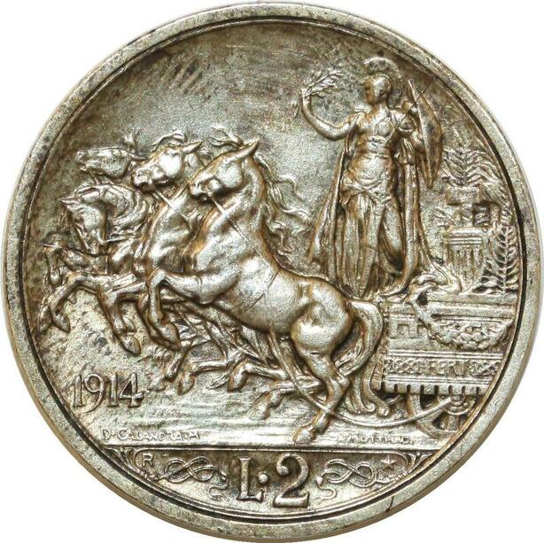 P3411 Italy 2 Lire Vittorio Emanuele III 1914 R Roma Silver UNC