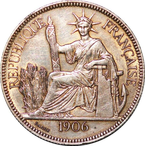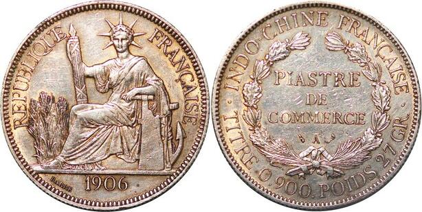 P3428 Scarce French Indochina Piastre 1906 A Paris Silver XF+