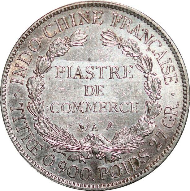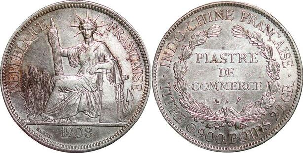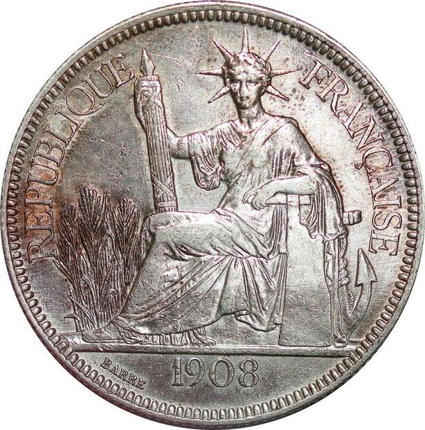 P3431 Scarce French Indochina Piastre 1908 A Paris Silver AU
