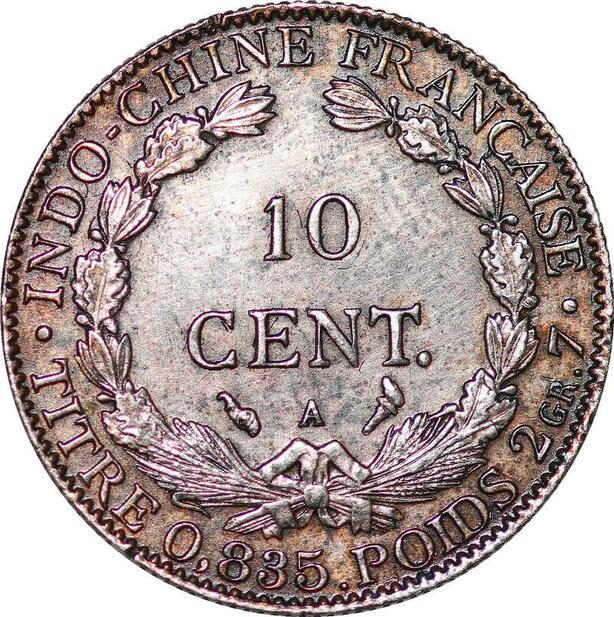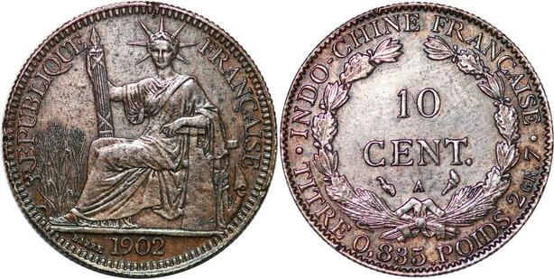 P3437 French Indochina 10 Cents 1902 A Paris Silver AU + -> Make offer