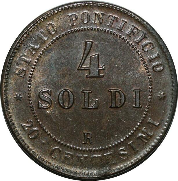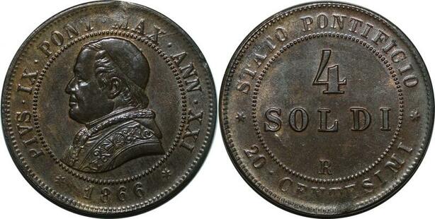 P3462 Vatican Papal States 4 Soldi Pius IX 1866 R Roma XXI UNC -> Make offer