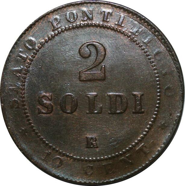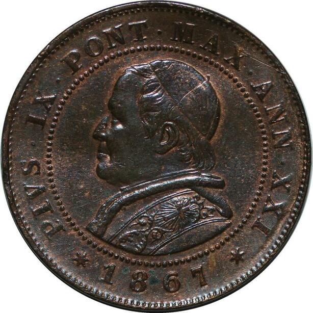 P3463 Vatican Papal States 2 Soldi 10 Centesimi Pius IX 1867 R XXI UNC