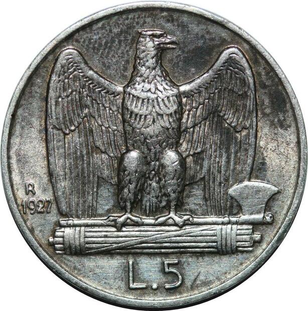 P3482 Italy 5 Lire Victor Emanuel III 1927 R Roma Silver UNC