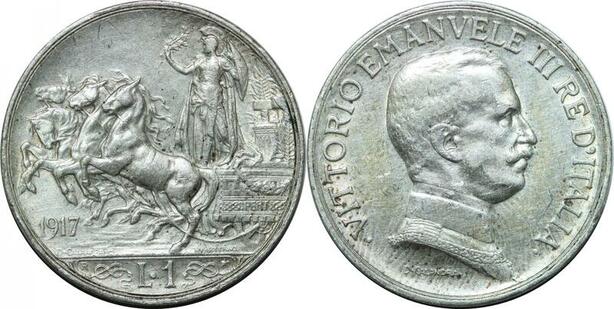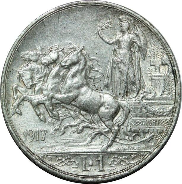 P3485 Italy Lira Vittorio Emanuele III 1917 R Roma Silver AU -> Make offer