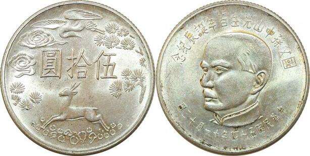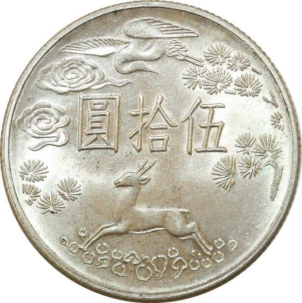 P3498 Taiwan China 50 Yuan Sambar Sun Yat-sen 1965 Silver UNC