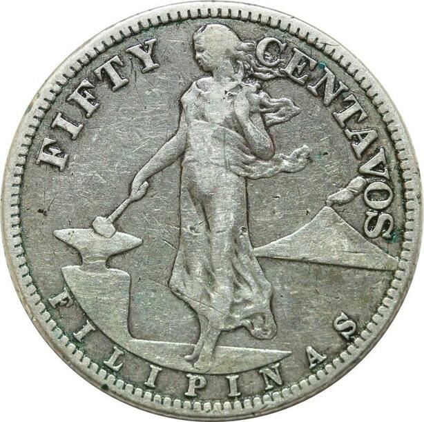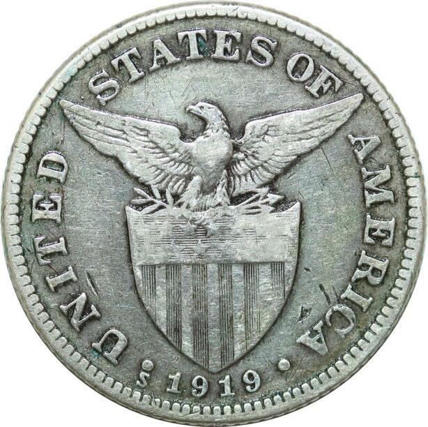 P3521 Philippines 50 Centavos United States America 1919 S San Francisco Silver