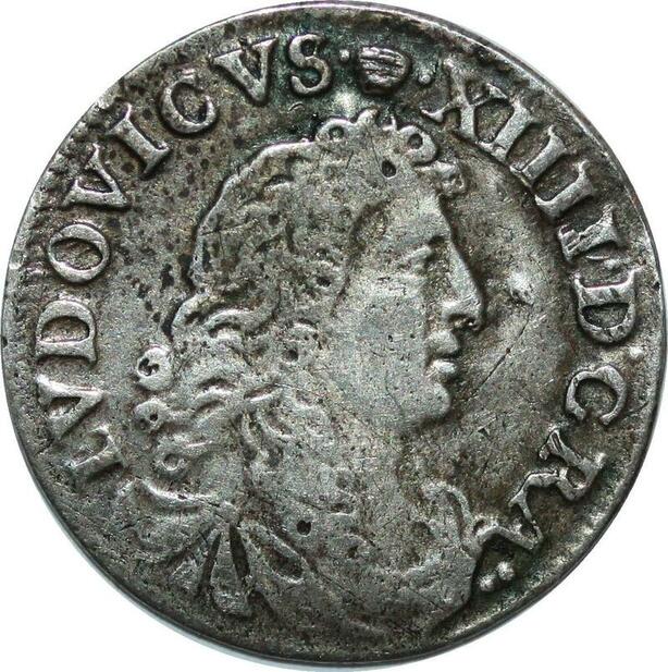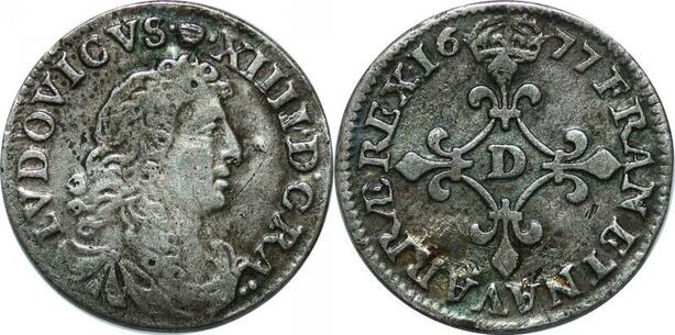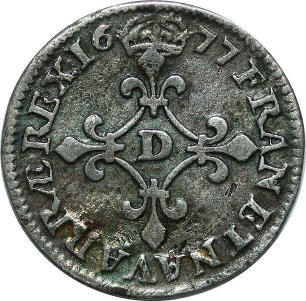 P3576 Rare France 4 Sols aux Traitants Louis XIV 1677 D Lyon Argent Qualité