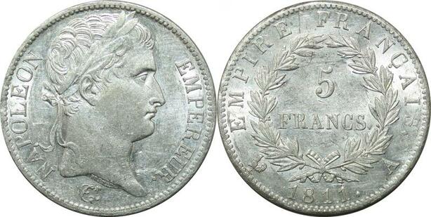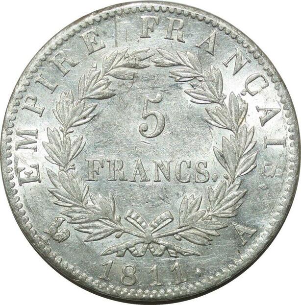 P3669 Rare France 5 Francs Napoléon I er 1811 A Paris Argent SUP ->Faire offre