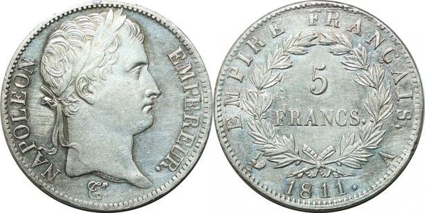 P3670 Rare France 5 Francs Napoléon I er 1811 A Paris Argent SUP SPL ->Faire offre