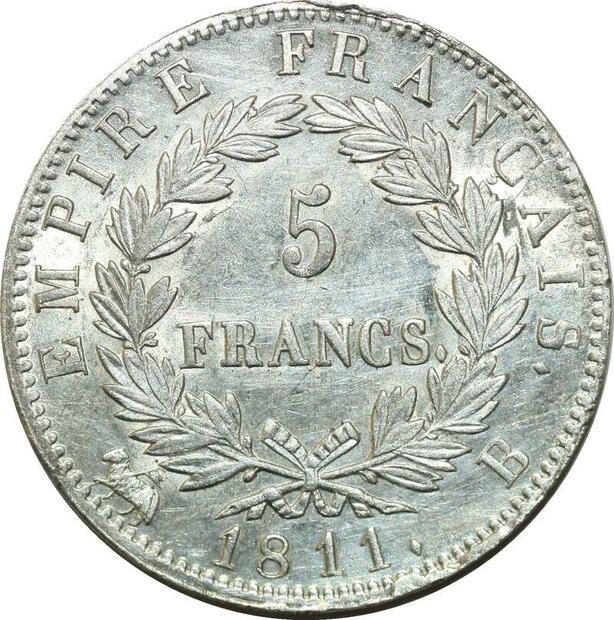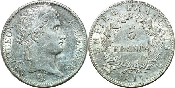 P3672 Rare France 5 Francs Napoléon I er 1811 B Rouen Argent SUP ->Faire offre