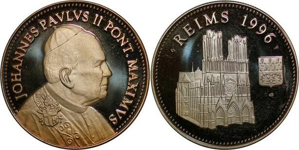 P3681 France Médaille Jean Paul II Visite Pape Reims 1996 Proof ->Faire offre