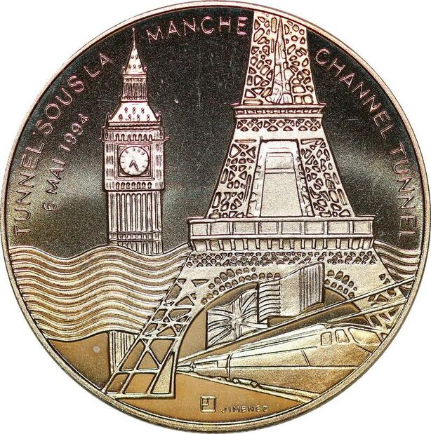P3682 France Médaille Tunnel Manche France Elisabeth II Francois Mitterand 1994 Proof