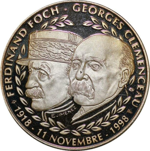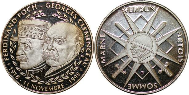 P3693 France Médaille Foch Clémenceau 1918 1998 Marne Verdun Artois Somme Proof