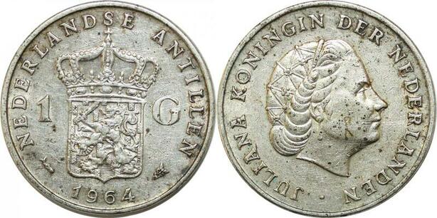 P3715 Indonesia Dutch West Indies Antilles Gulden Juliana 1964 Silver