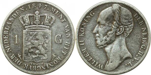 P3716 Netherlands Gulden Willem II 1847 Sword Silver -> Make offer