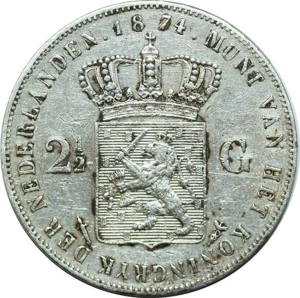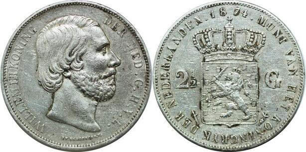 P3731 Netherlands 2 1/2 Gulden Willem III Koning 1874 Silver -> Make offer