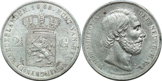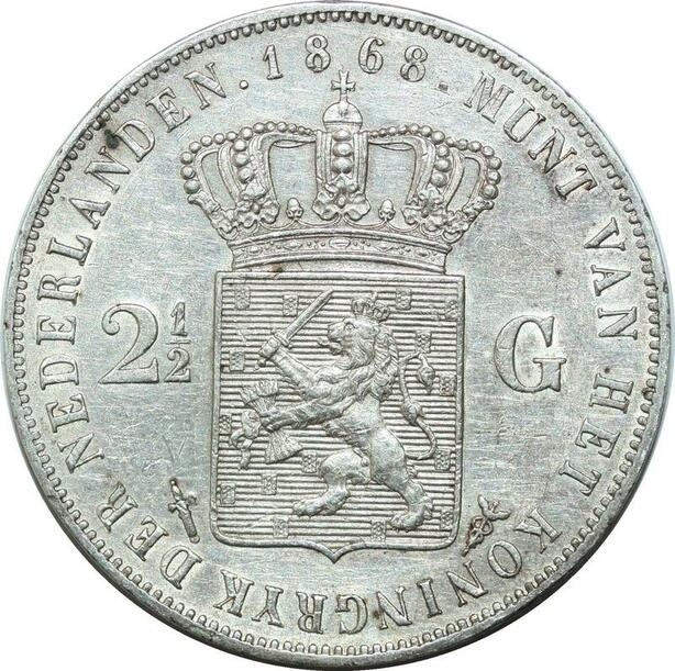 P3734 Rare Netherlands 2 1/2 Gulden Willem III Koning 1868 Silver -> Make offer