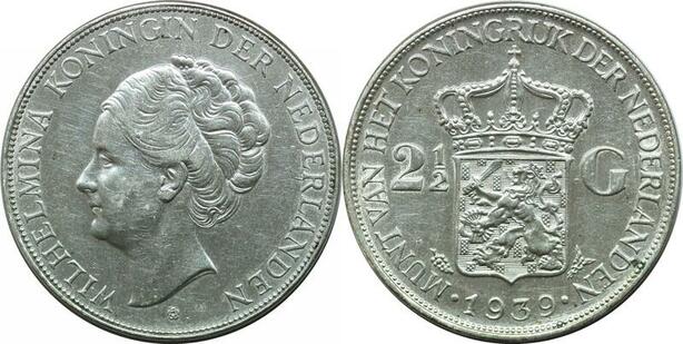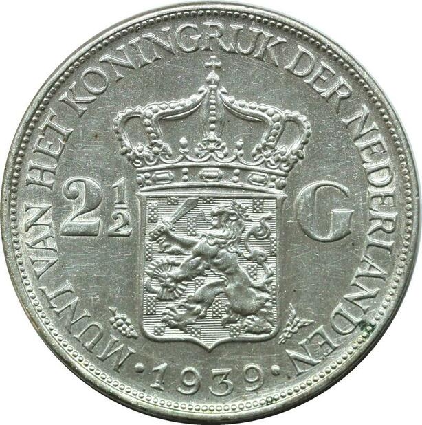 P3737 Netherlands 2 1/2 Gulden Wilhelmina Koningin 1939 Silver -> Make offer