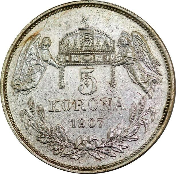 P3779 Rare Hungary 5 Korona Franz Joseph I 1907 KB Silver -> Make offer