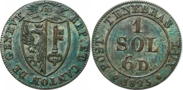 P3839 Switzerland Genève 1 Sol 6 Deniers 1825 -> Make offer