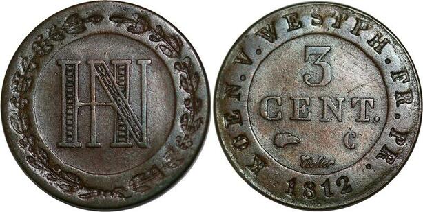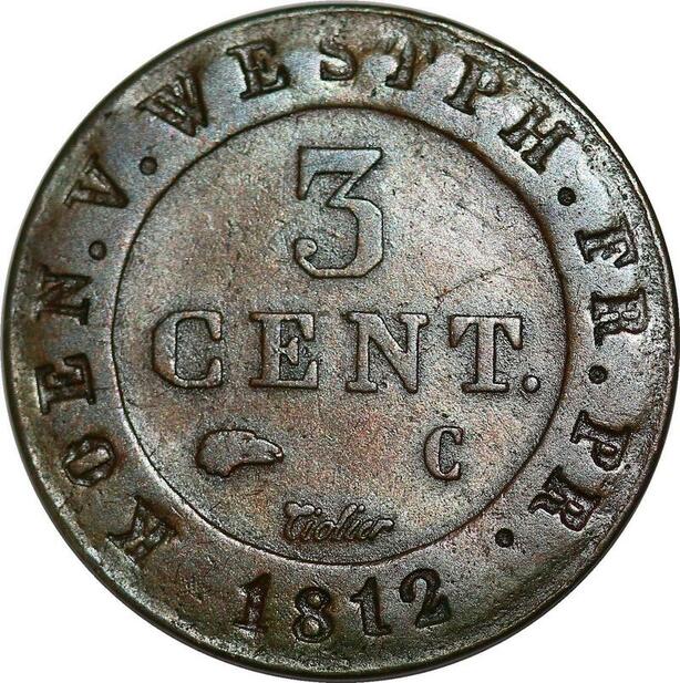 P3864 German States Westphalia 3 Centimes Jerome Napoleon 1812 C Cassel