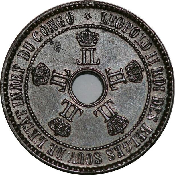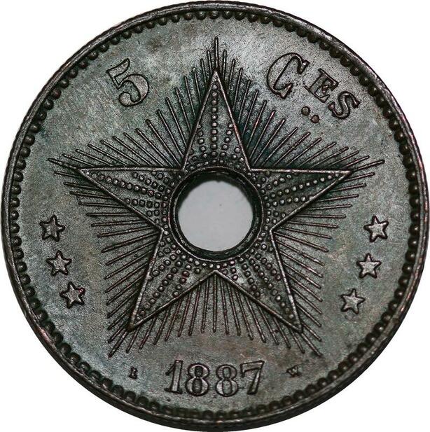 P3871 Congo 5 Centimes Léopold II 1887 AU+ ->Make offer