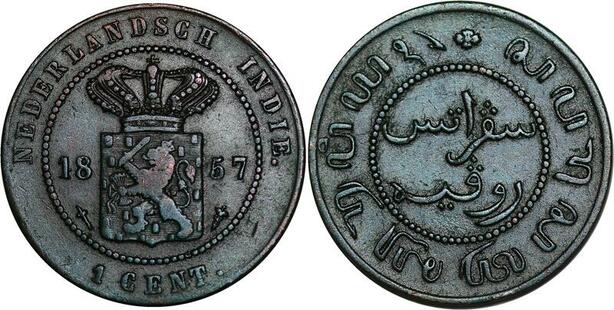 P3878 Indonesia Indie Netherlands 1 Cent Willem III / Wilhelmina 1857 Utrecht ->M offer