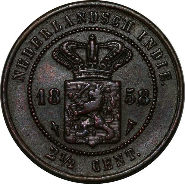 P3880 Indonesia Indië Nederlands 2 1/2 Cent Wilhelmina 1858 ->Make offer