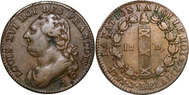 P3887 Rare France Constitution 12 Deniers Louis XVI 1791 an 3 A Paris sans différents