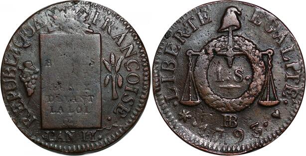 P3892 Rare France Fauté Convention Sol balances Louis XVI table loi 1793 BB Strasbourg refrappé