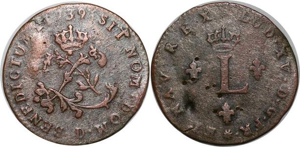 P3899 France Double Sol Louis XV 1739 D Lyon ->Faire offre