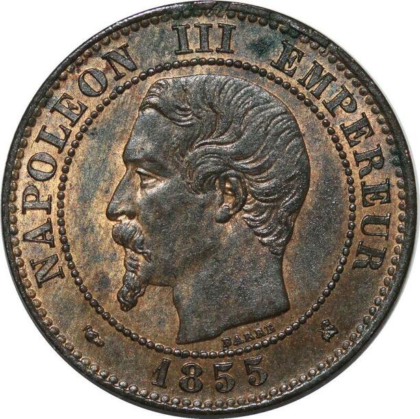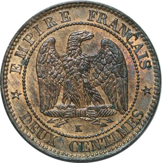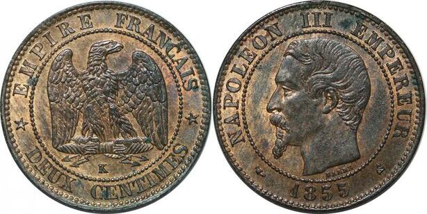 P3925 Rare France 2 Centimes Napoléon III 1855 K Bordeaux SPL ++ FDC ->Faire offre