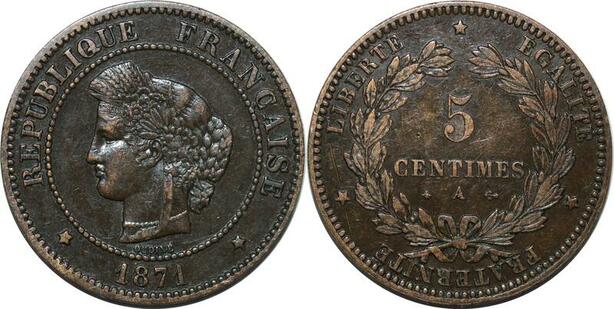 P3927 France 5 Centimes Cérès 1871 Petit A -> Faire offre