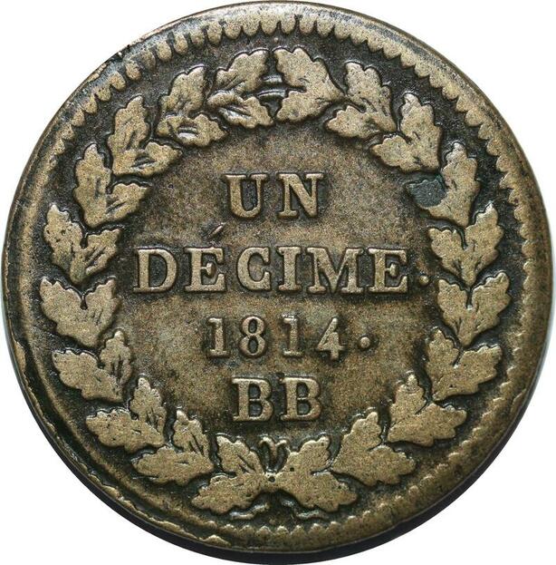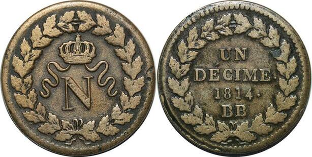 P3941 France Un décime Napoléon I N Couronné Poids lourd 1814 ·· ->Faire offre