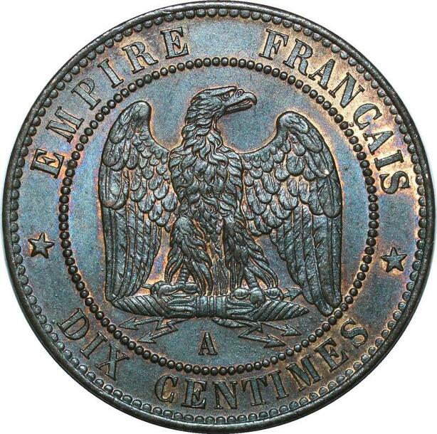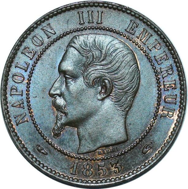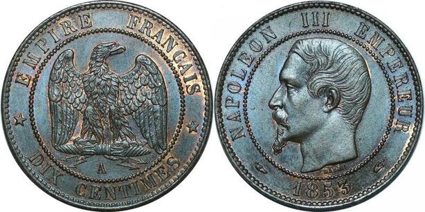 P3952 Rare France 10 Centimes Napoléon III 1853 A Paris PCGS MS62 Undergraded